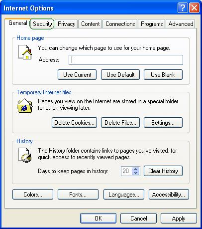 1. From the 'Tools' menu of Internet Explorer, select 'Internet Options'. Or Right click on the Internet Explorer icon on Desktop. Select properties. A dialog called Internet Properties or Internet Options will show up.