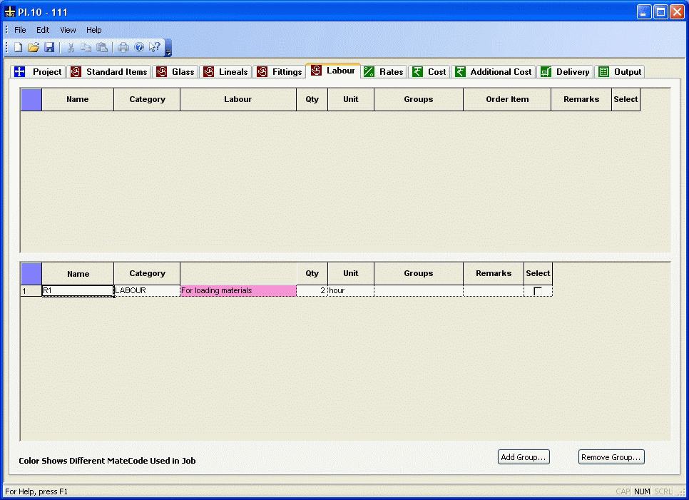 The Labour page is used to input other resources like Labour, Machine, etc. details.