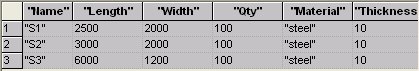 Name, Length, Width, Qty, Material, Thickness,