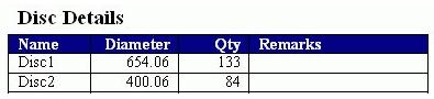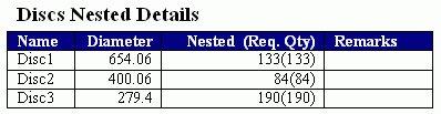 Disc Nest Details :This table gives the list of disc nest and no of discs req.