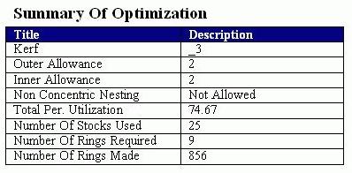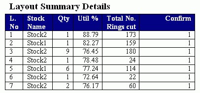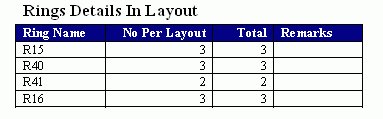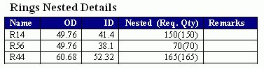 Rings Nest Details :This table gives the list of rings nest and no of rings req.